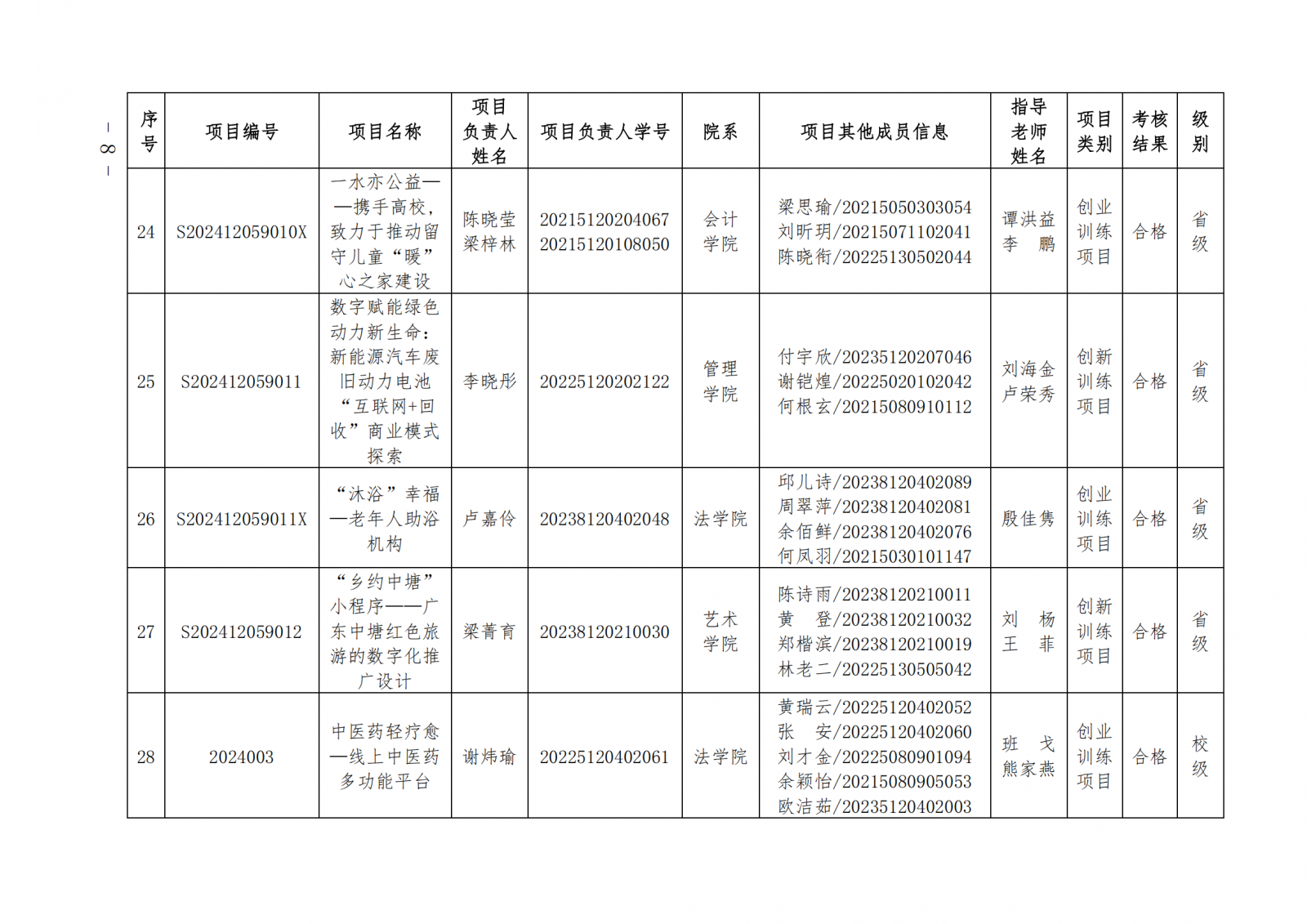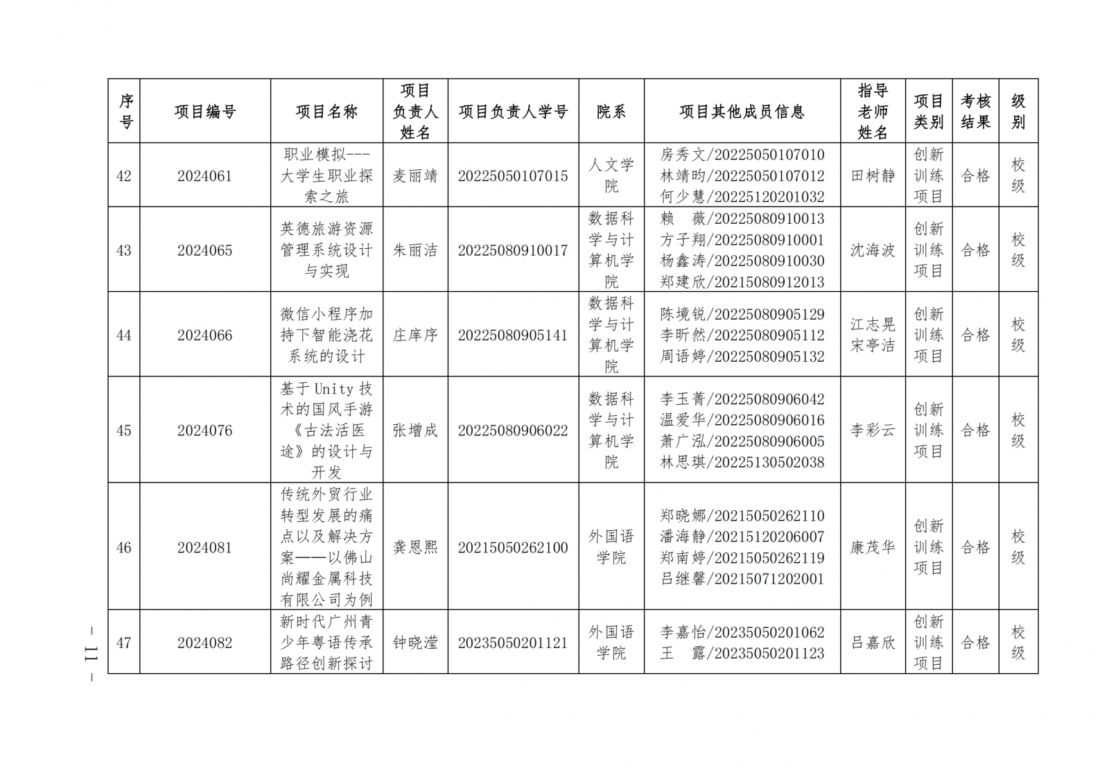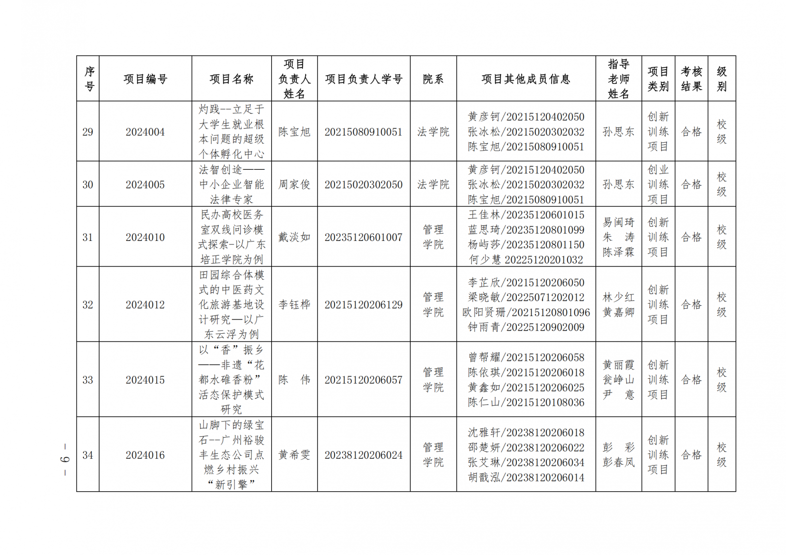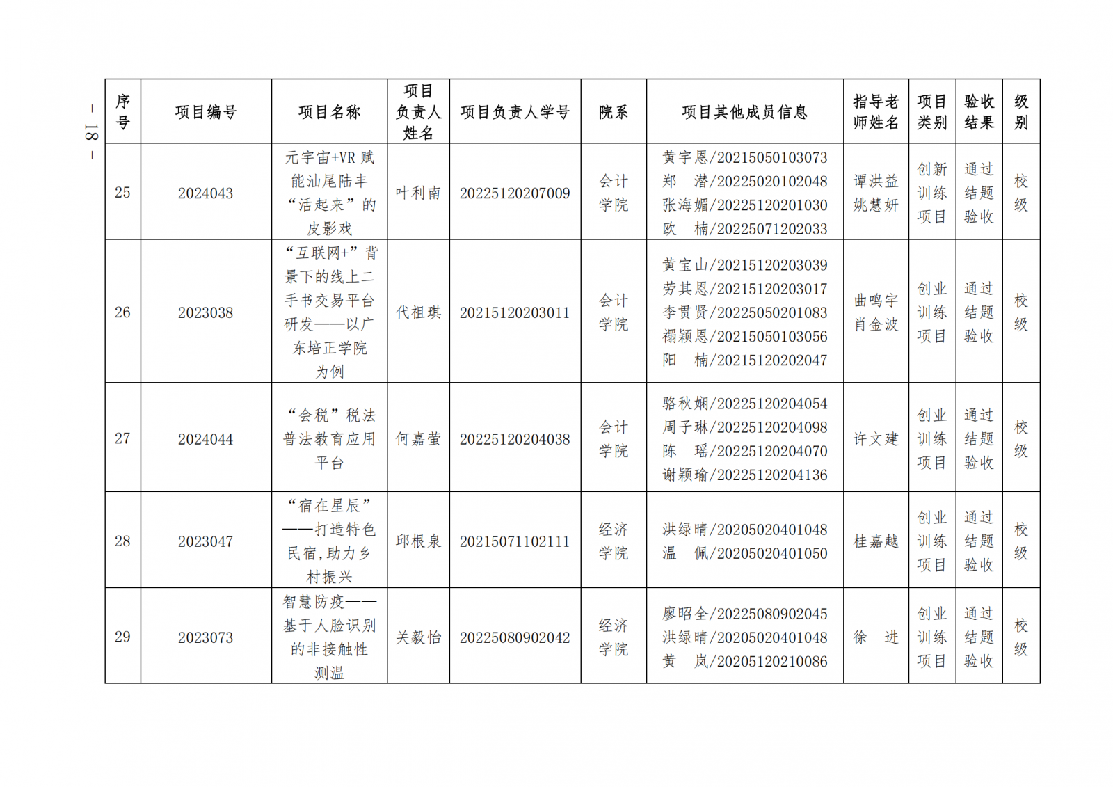 2024教124(广东培正学院关于公布2024-2025学年第一学期大学生创新创业训练计划项目中期检查和结项验收结果的通知)