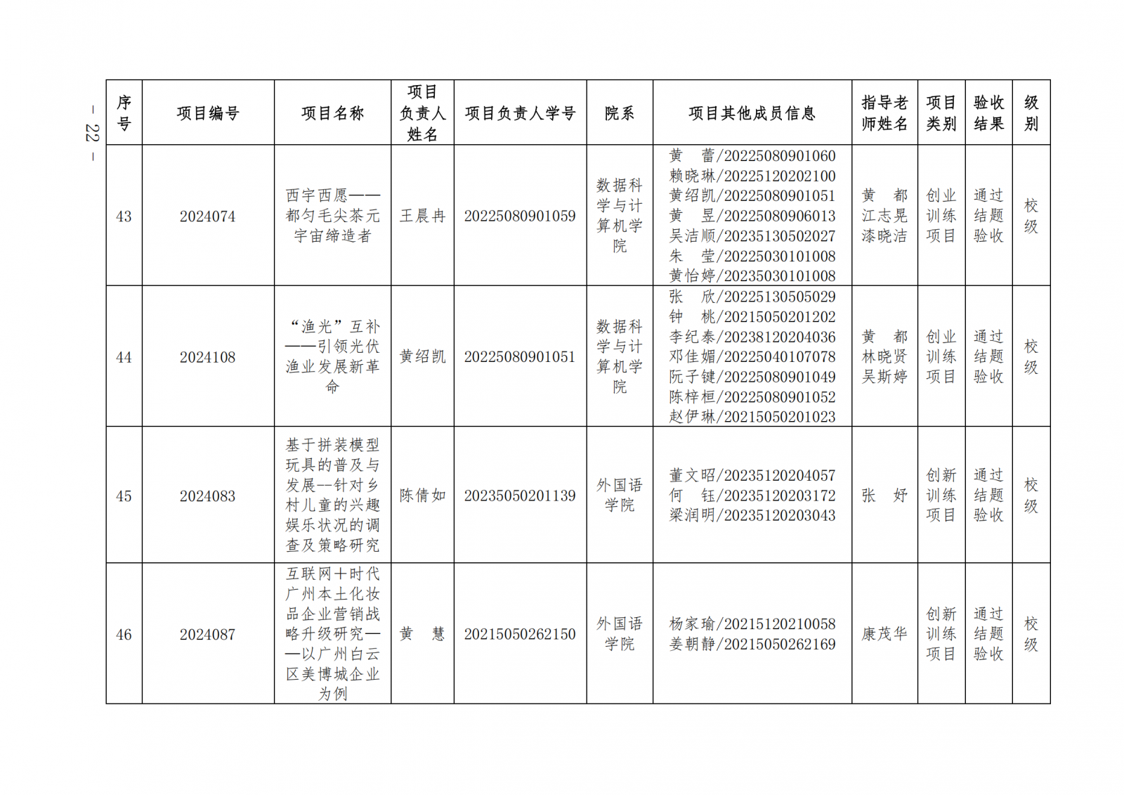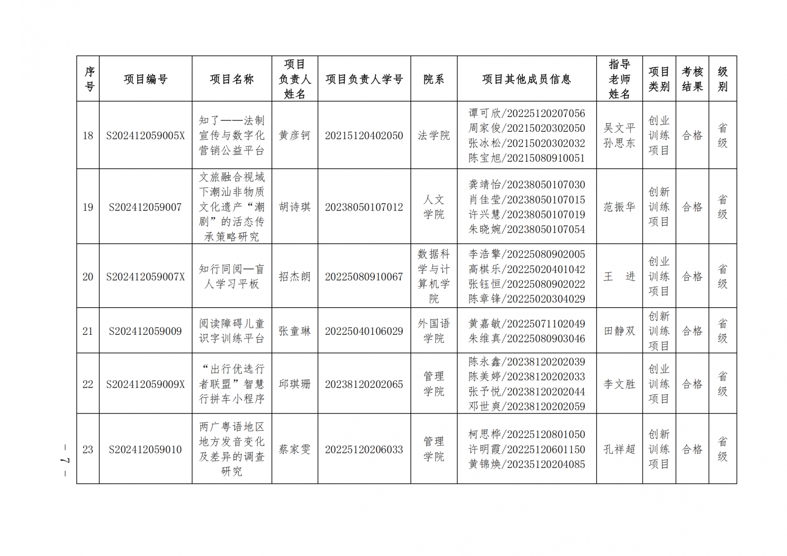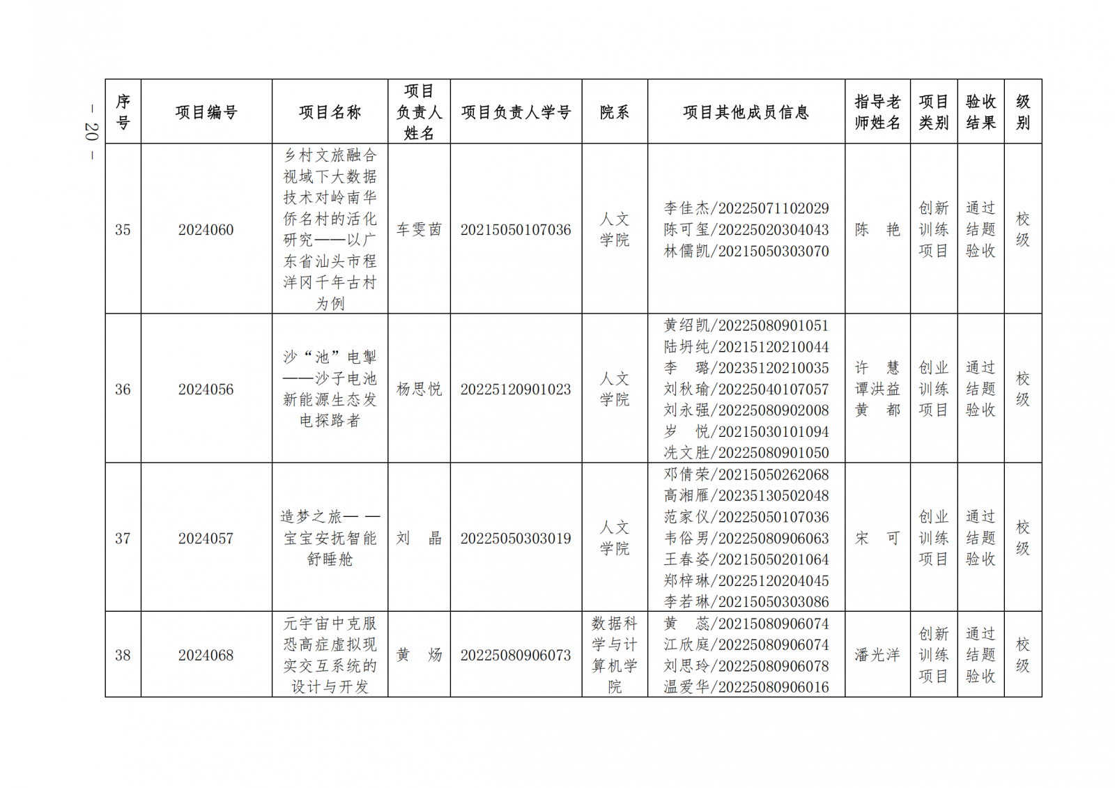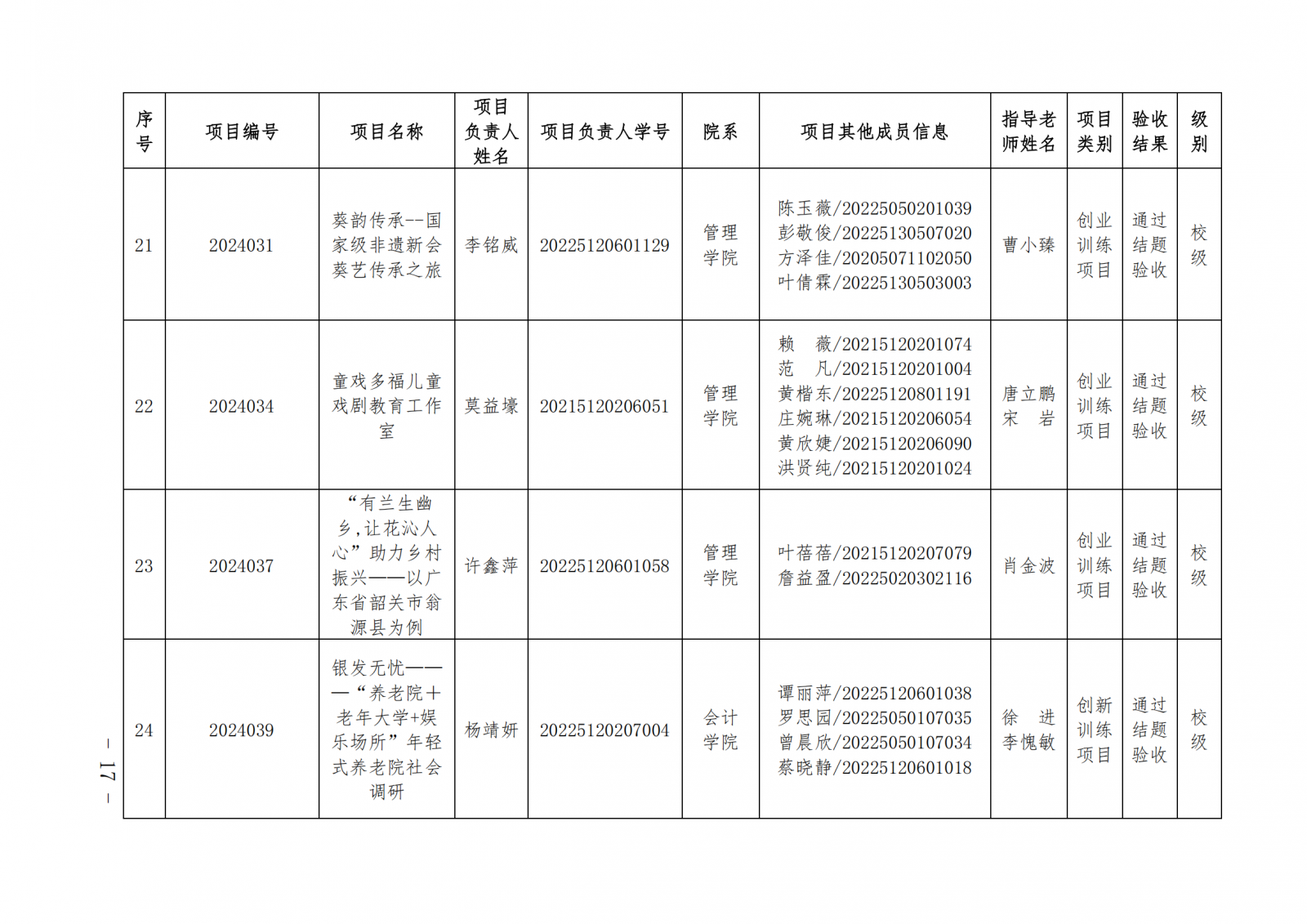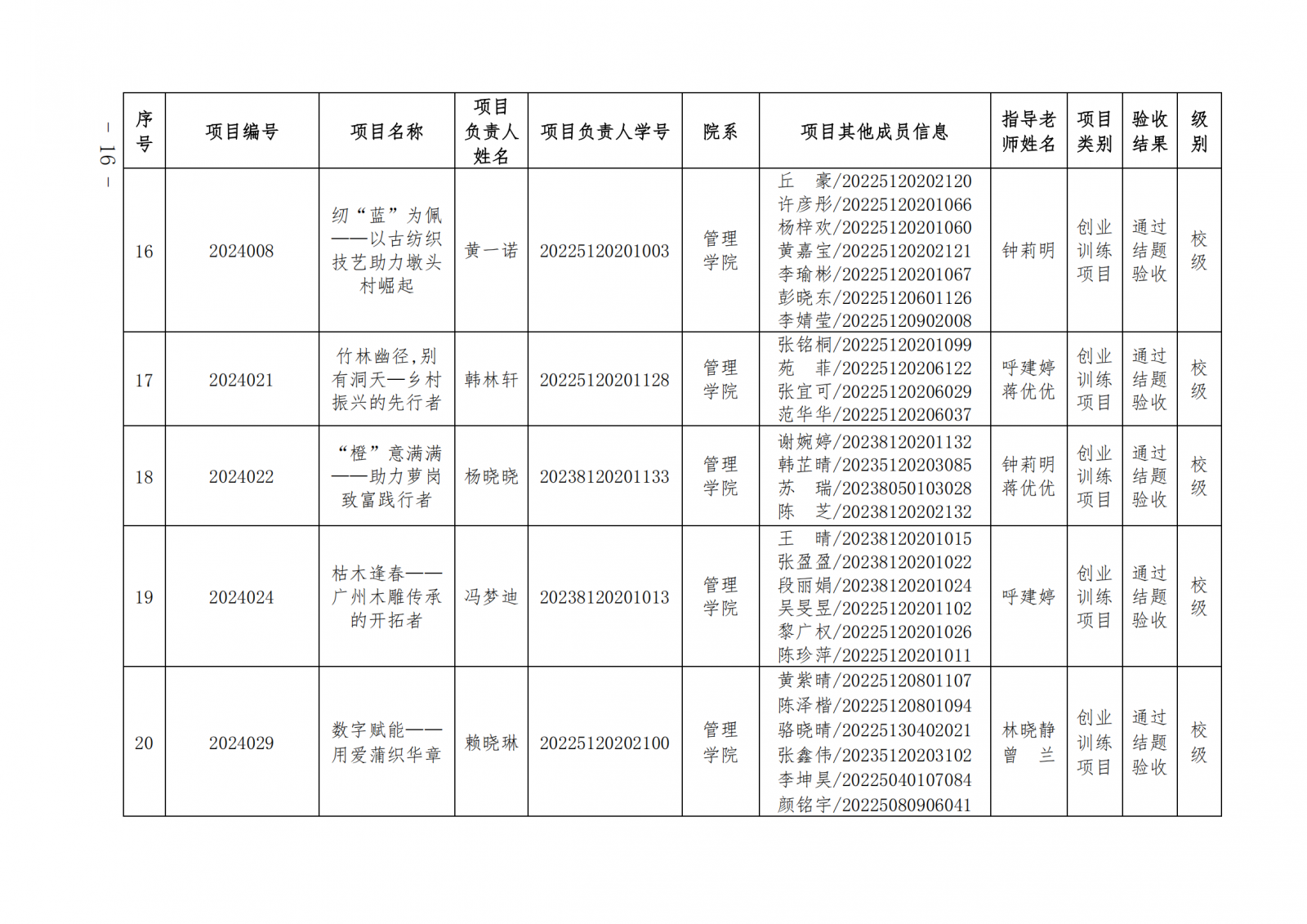 2024教124(广东培正学院关于公布2024-2025学年第一学期大学生创新创业训练计划项目中期检查和结项验收结果的通知)